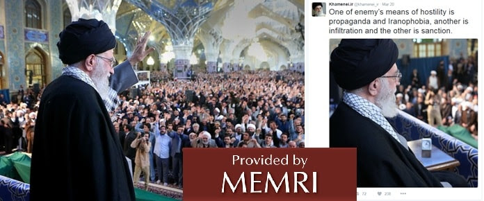 Khamenei delivering Norooz address, English.khamenei.ir, March 23, 2016; one of Khamenei's tweets in the series. Source: @khamenei_ir, March 20, 2016.